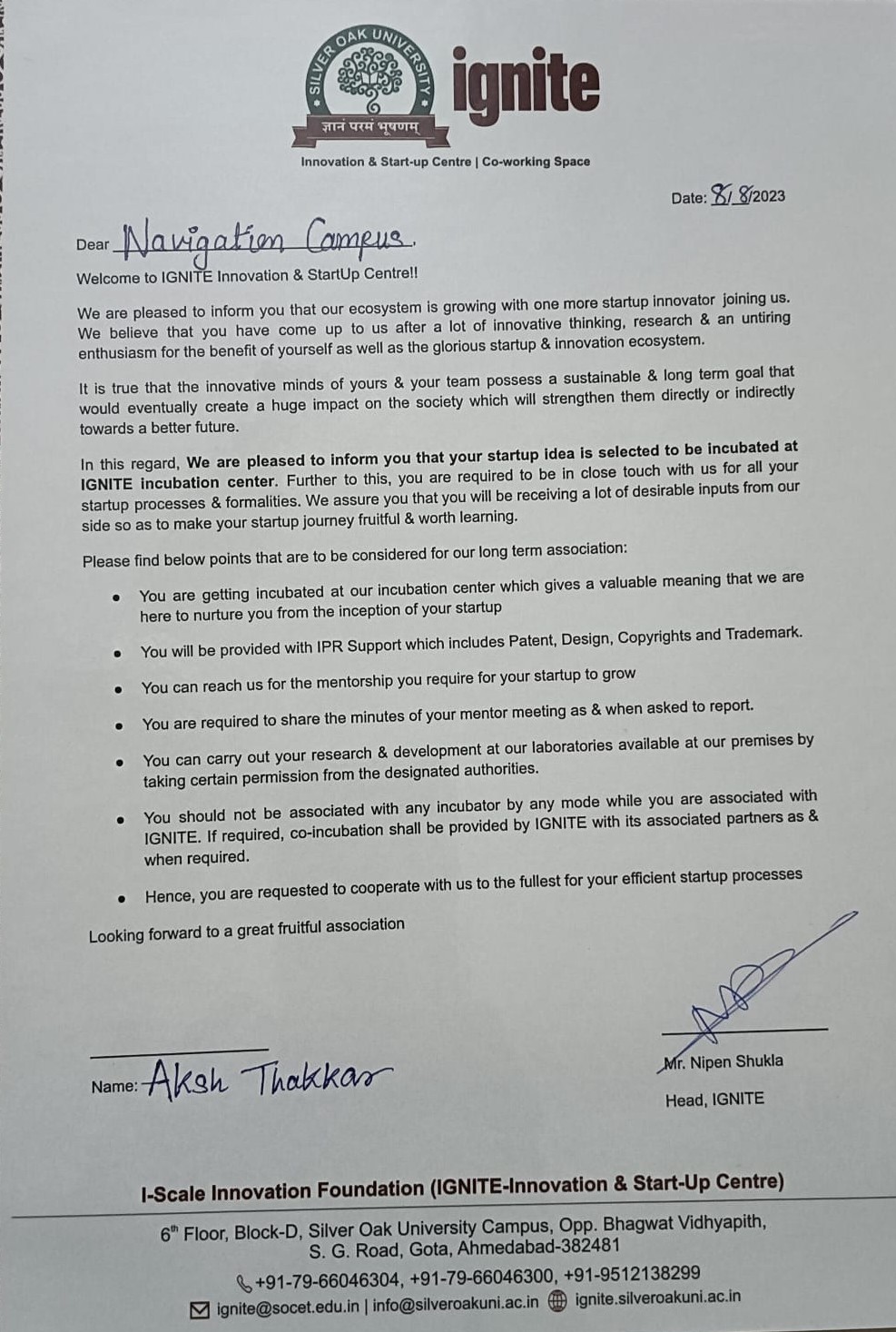 15-day internship working on startup idea validation.